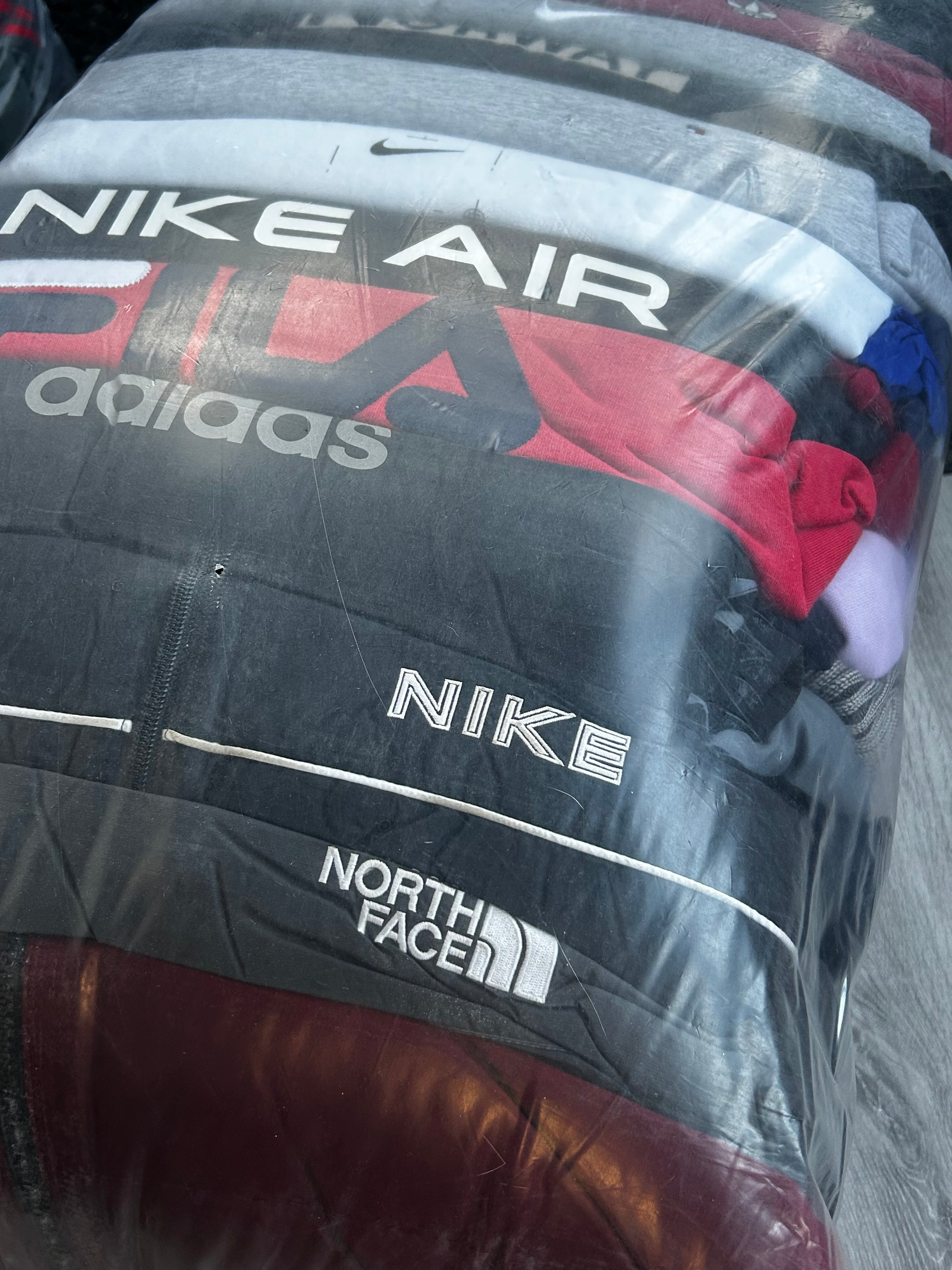 Todas las prendas provienen de marcas reconocidas como Nike, Adidas, Carhartt, Tommy Hilfiger, Lacoste, Dickies, Ralph Lauren, Umbro,Columbia, Kappa, Champion, Reebok, The North Face, Puma , entre muchas otras.